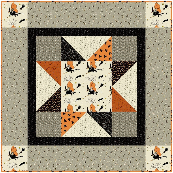 Perfect for confident beginners and experienced quilters alike, this medium-difficulty kit includes all the fabric you need to piece and complete a 40½″ x 40½″ wall hanging or table topper. Add a little magic to your fall décor with this charming Halloween design!