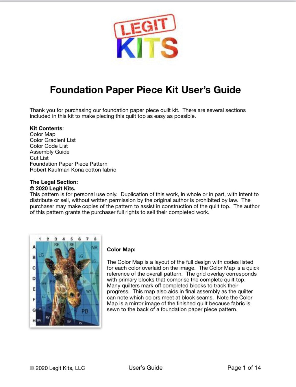 This is a printed pattern for a quilt top only. The fully printed pack is to be used one time only by the original purchaser. Knowledge of foundation paper piecing is required to assemble this work of art. A visual guide to paper piecing is included in this product, as well as a recommendation for a YouTube video which teaches this technique.