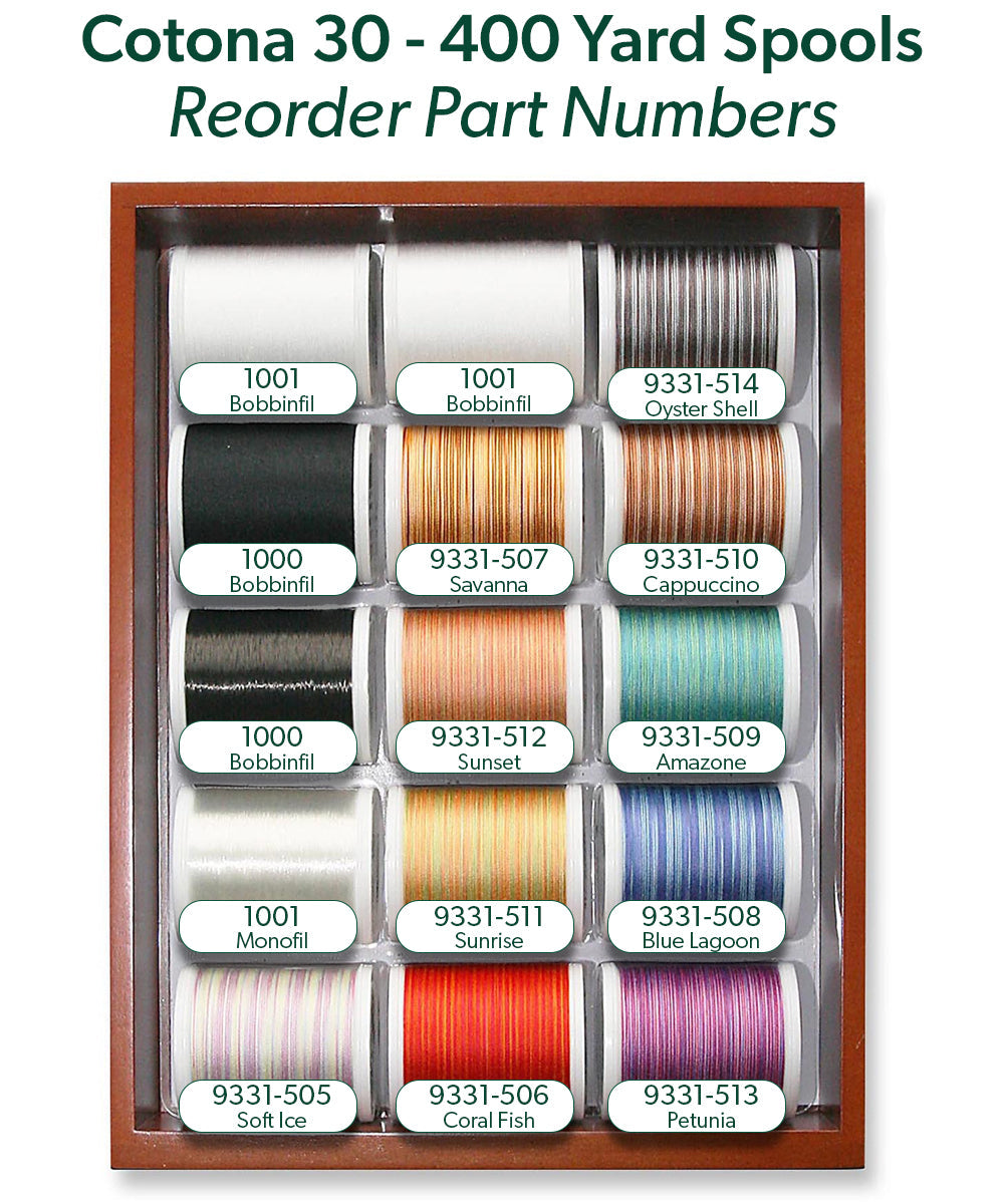 - 10 - 440-yard (400m) Spools of Cotona 30 Thread – Multicolor