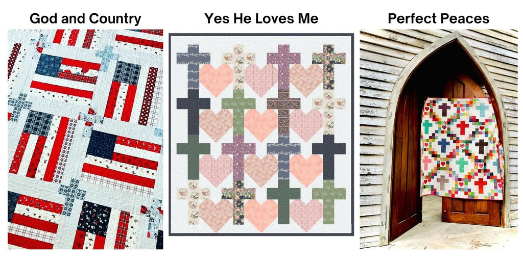 Yes He Loves Me, God and Country and Perfect Peaces Quilt Patterns are included in this set.