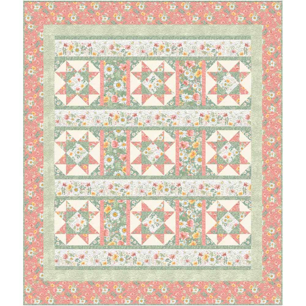 Filled with charming and timeless florals in a color palette of peachy-pinks, minty greens, and creamy ivory, this quilt is sure to bring a lovely vintage vibe to any space. The Daisy Days Kit includes pattern by Wilmington Prints and all the fabrics needed for the top and binding from the Daisy Days collection by Beth Grove for Wilmington. Finished size is 68" x 80". Backing available separately, 5 yards x 44" wide or 2-1/2 yards x 108" wide recommended.