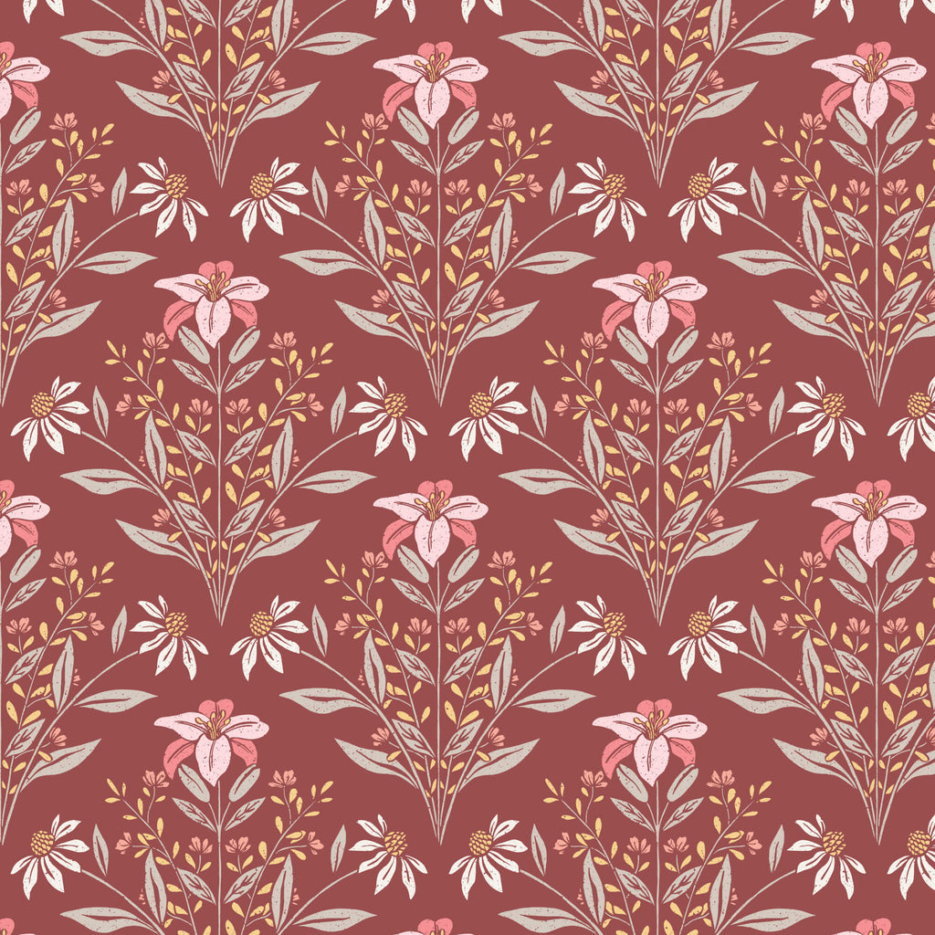 Eventide by Cloud9 Fabrics, designed by Jillian Anderson, captures the gentle magic of garden evenings with lush florals, soft vines, and whimsical insect‑and‑ladybug motifs. With rich, earthy tones warmed by sunset hues and organic cotton printed with eco‑friendly dyes, the collection brings a natural, serene charm that feels like twilight in the garden.