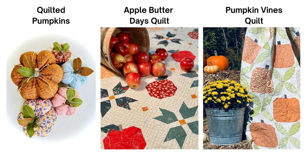 Quilted Pumpkins, Apple Butter Days Quilt and Pumpkin Vines Quilt Patterns are included.