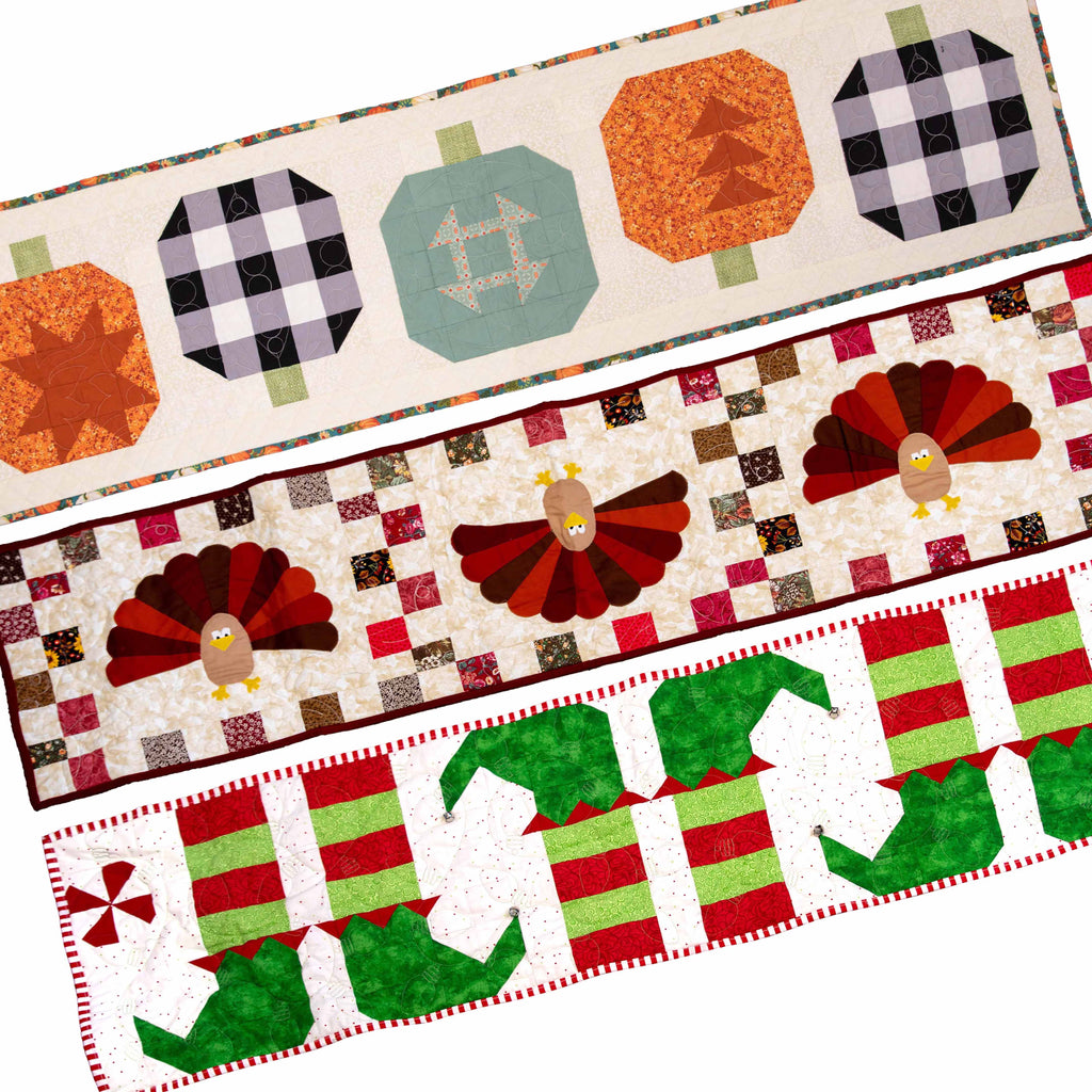 Make your holiday decorating fun and so simple with these awesome quilted table runner kits.