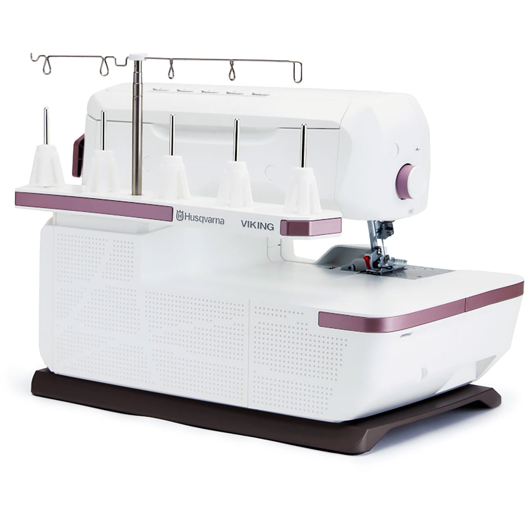 Thread guides accommodate standard overlock thread or heavier decorative threads with ease.