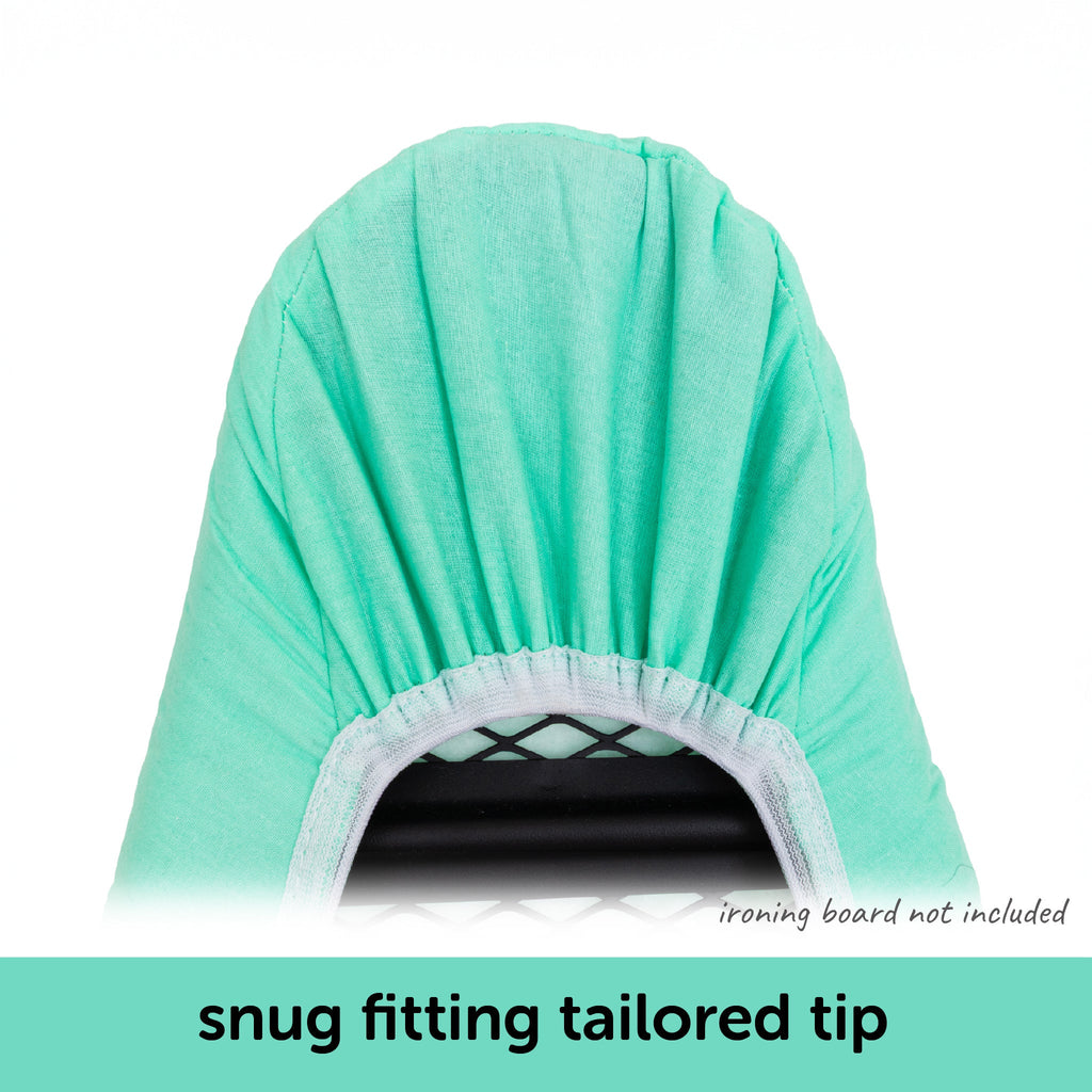 - EASY and SECURE FIT. A tailored nose pocket for a snug fit on your ironing board up to 15" x 54" (38 x 137cm). A strong elastic edge and two straps hold the cover securely for a smooth, wrinkle-free surface, reducing ironing effort.