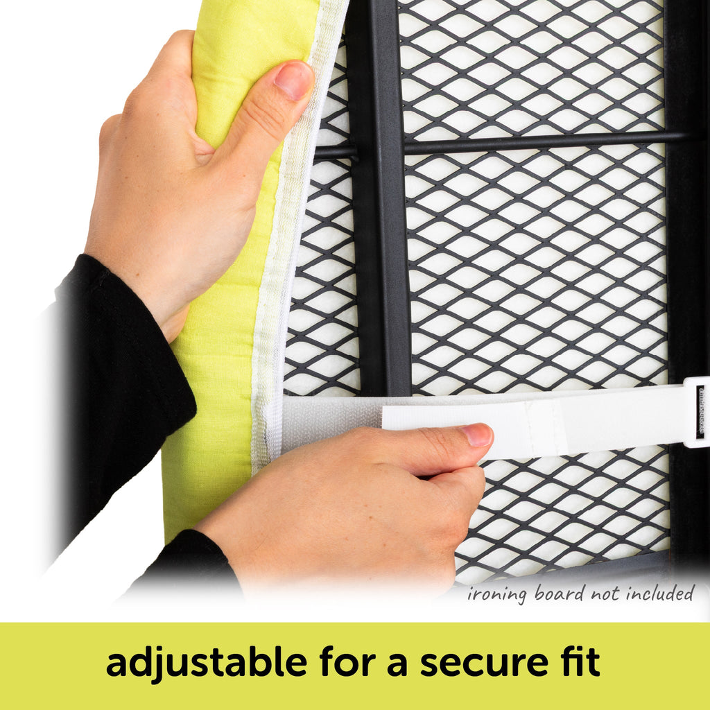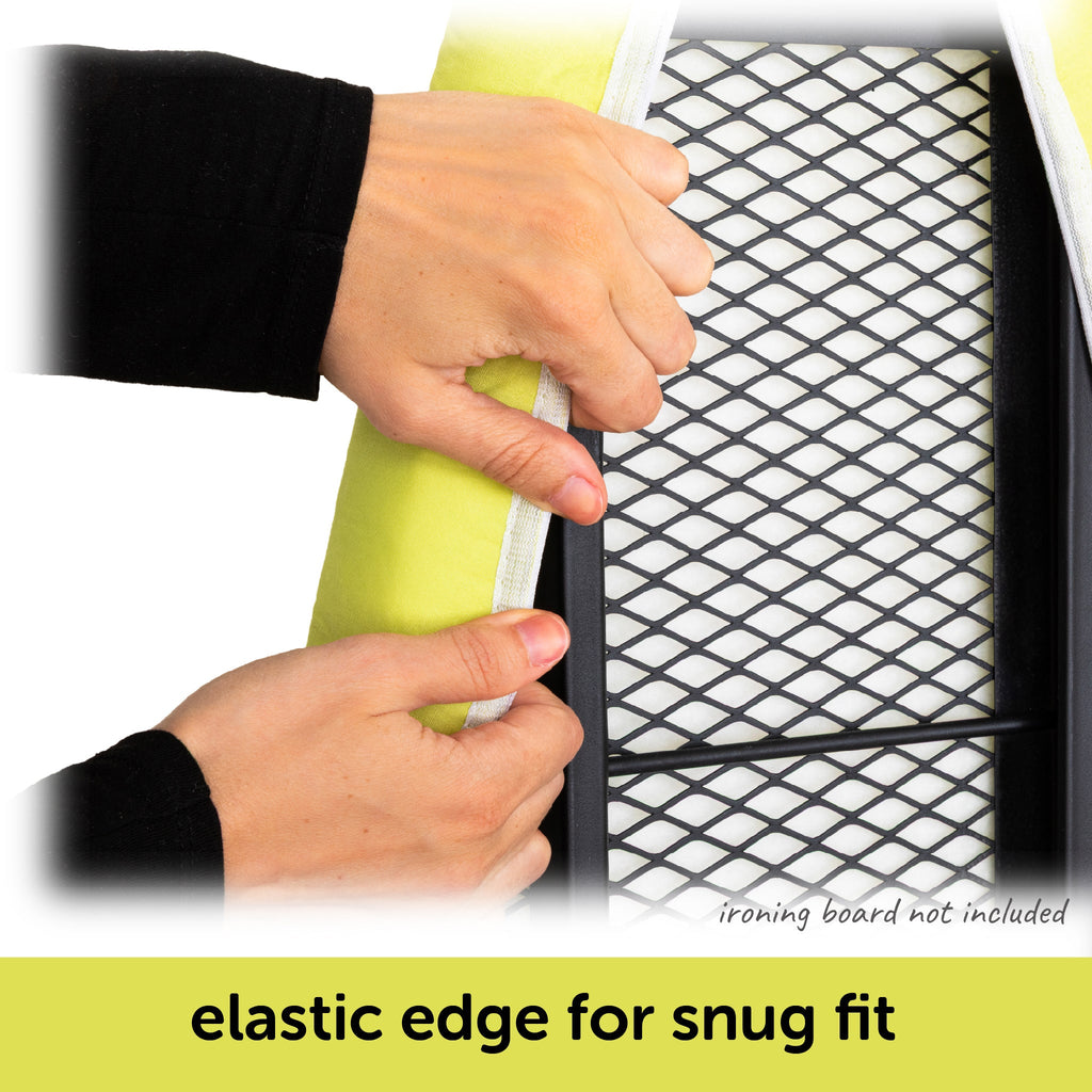 - EASY and SECURE FIT. A tailored nose pocket for a snug fit on your ironing board up to 15" x 54" (38 x 137cm). A strong elastic edge and two straps hold the cover securely for a smooth, wrinkle-free surface, reducing ironing effort.