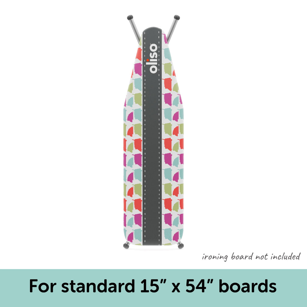 Our bright, cheerful ironing board covers, Poppy and Silhouette, feature the M3Pro colors coral, aqua, and pistachio and are designed to brighten up your sewing or laundry room. The 100% cotton cover with a firm felt backing is easily adjustable for a perfect ironing and pressing surface.