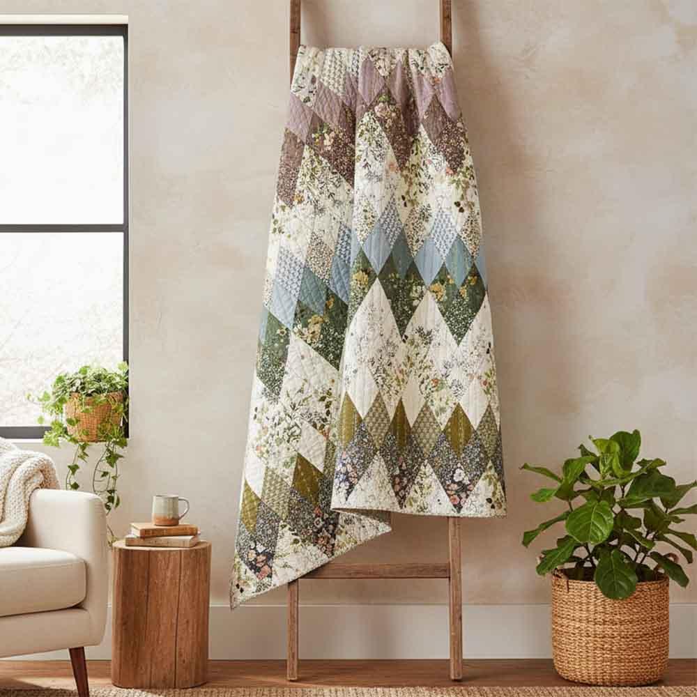 Simple cutting and piecing make for a quick, fun, graphic project that features garden-inspired watercolor floral prints from the Bloomfield collection by Kelly Ventura in a color palette including ivory, navy, blush, plum, lake and moss. Bloomfield captures the carefree spirit of a blooming garden with every fabric. The Kaleidoscope Kit includes pattern by Tamara Kate and all the fabrics needed for the top and binding. Finished size is 56" x 72". Backing available separately, 4-1/2 yards x 44" wide recommended.