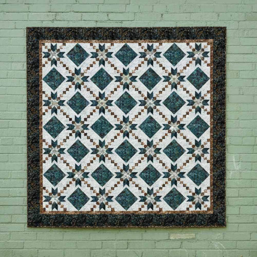 Created with two classic blocks—Blackford’s Beauty and Square-in-a-Square—this design blends tradition with striking visual appeal. The clear and detailed cutting and sewing diagrams make the block assembly quick and easy! The Lavish Kit includes pattern by Material Girlfriends and all the batiks needed for the top and binding from the Autumn Mist collection by Hoffman Fabrics. Finished size of this advanced beginner project is 99" square. Backing available separately, 9 yards x 44" wide or 3 yards x 108" wide recommended.