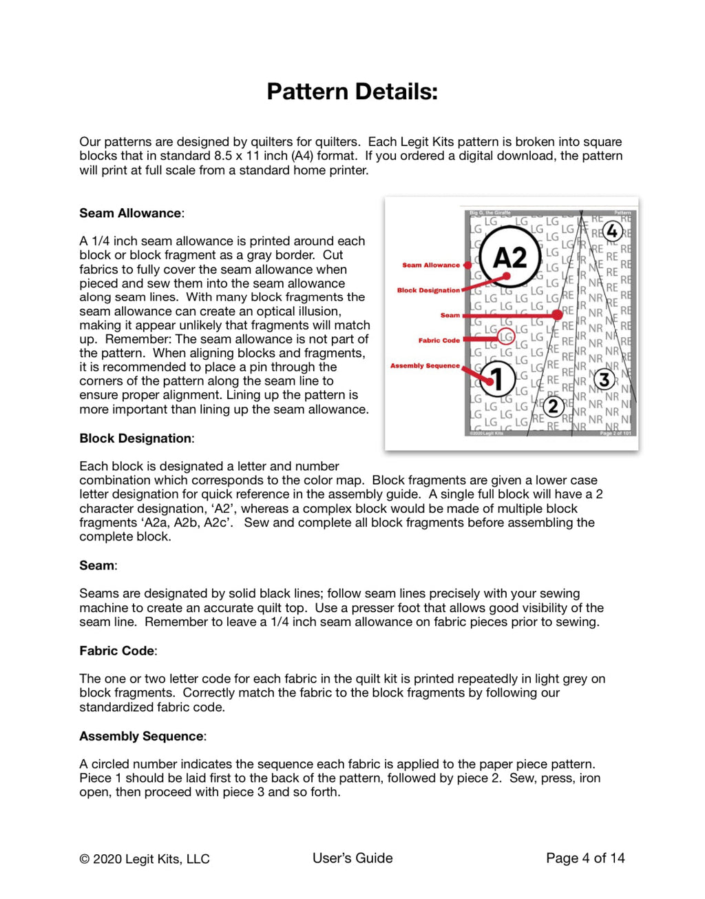 This is a quilt top kit only. Knowledge of foundation paper piecing is required to assemble this work of art. The basics of paper piecing are explained in a short photo enhanced guide included with your kit as well as further recommendations for learning this exciting technique.