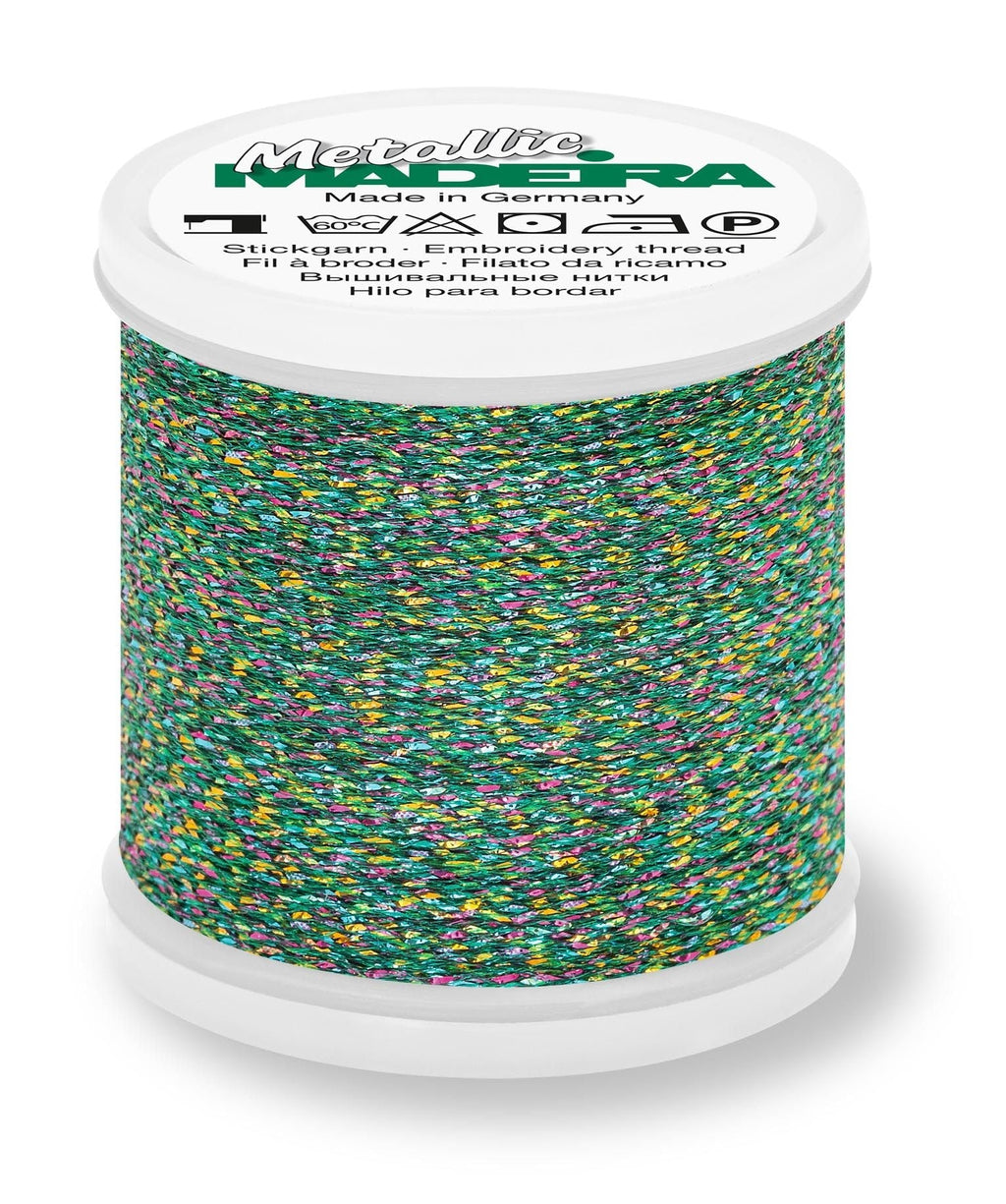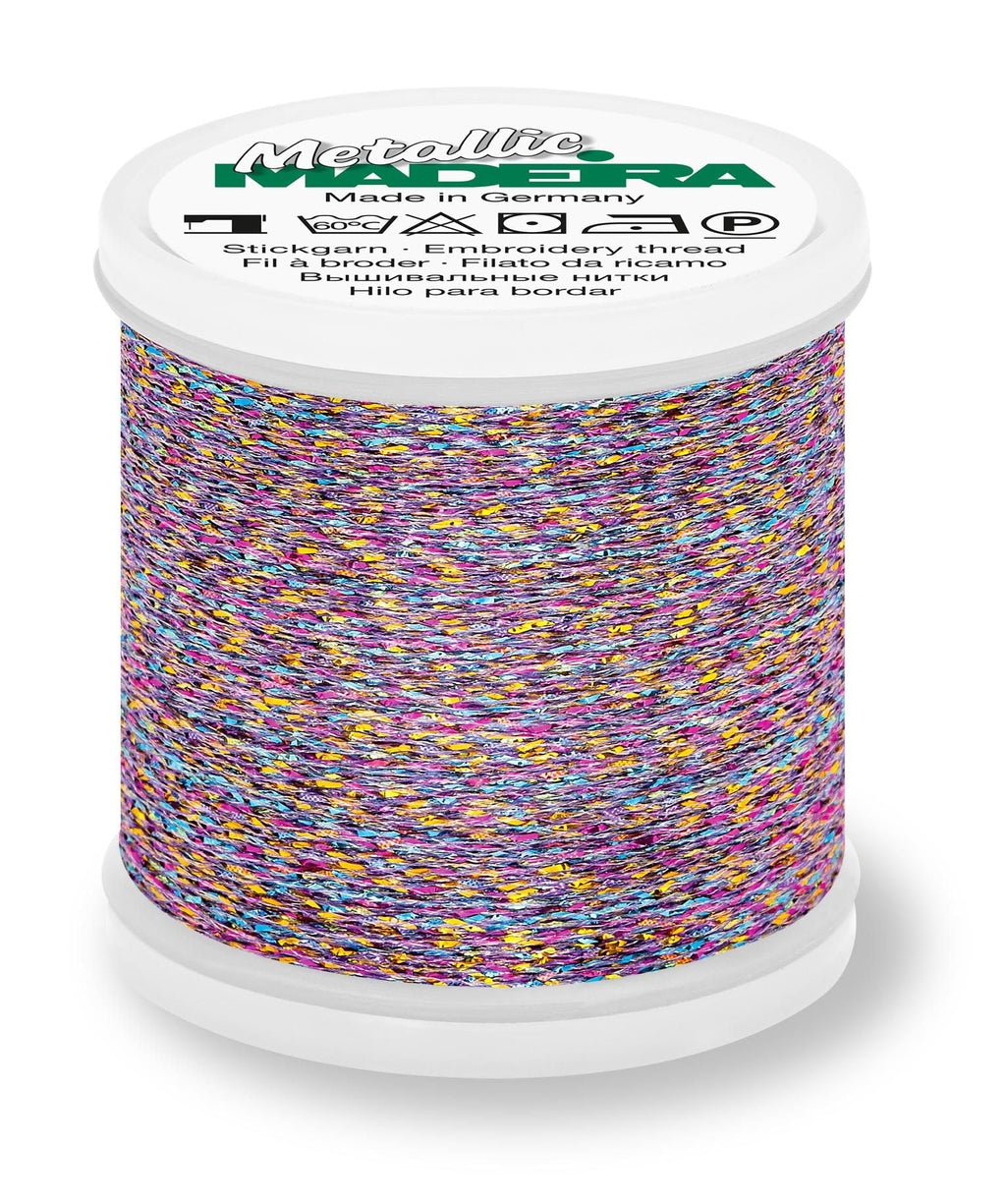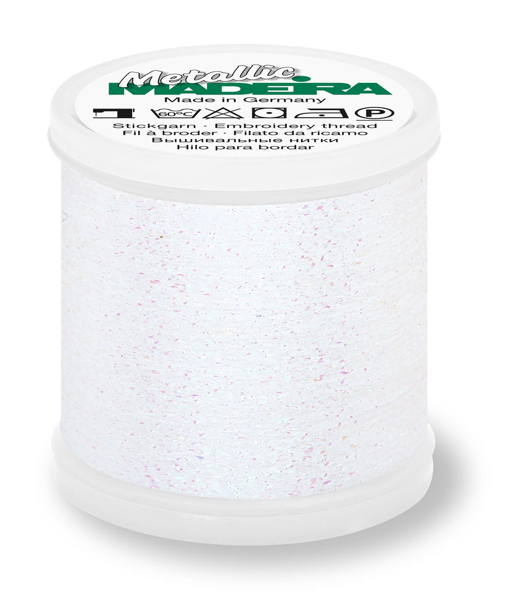 Madeira Metallic #40 - Sparkling is a high-shine metallic thread featuring a unique twist construction that creates a bold, dimensional sparkle. Traditionally used for embroidery, this eye-catching thread also works beautifully for decorative stitching, quilting, and topstitching, making it a versatile addition to your thread collection.