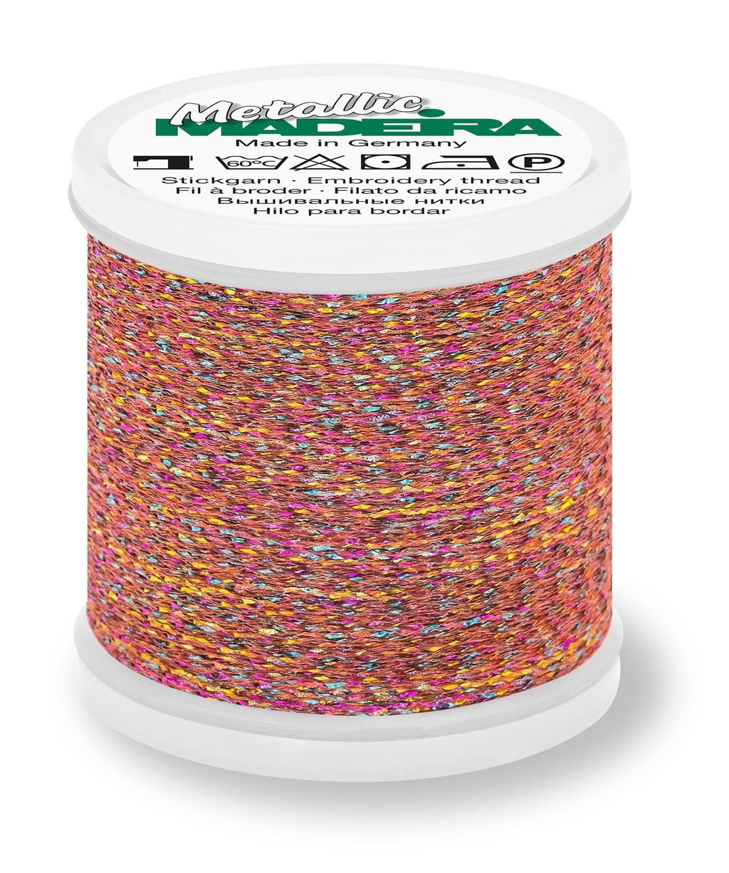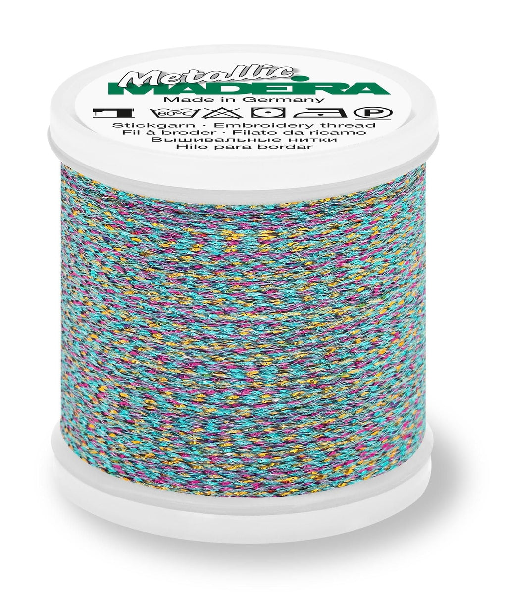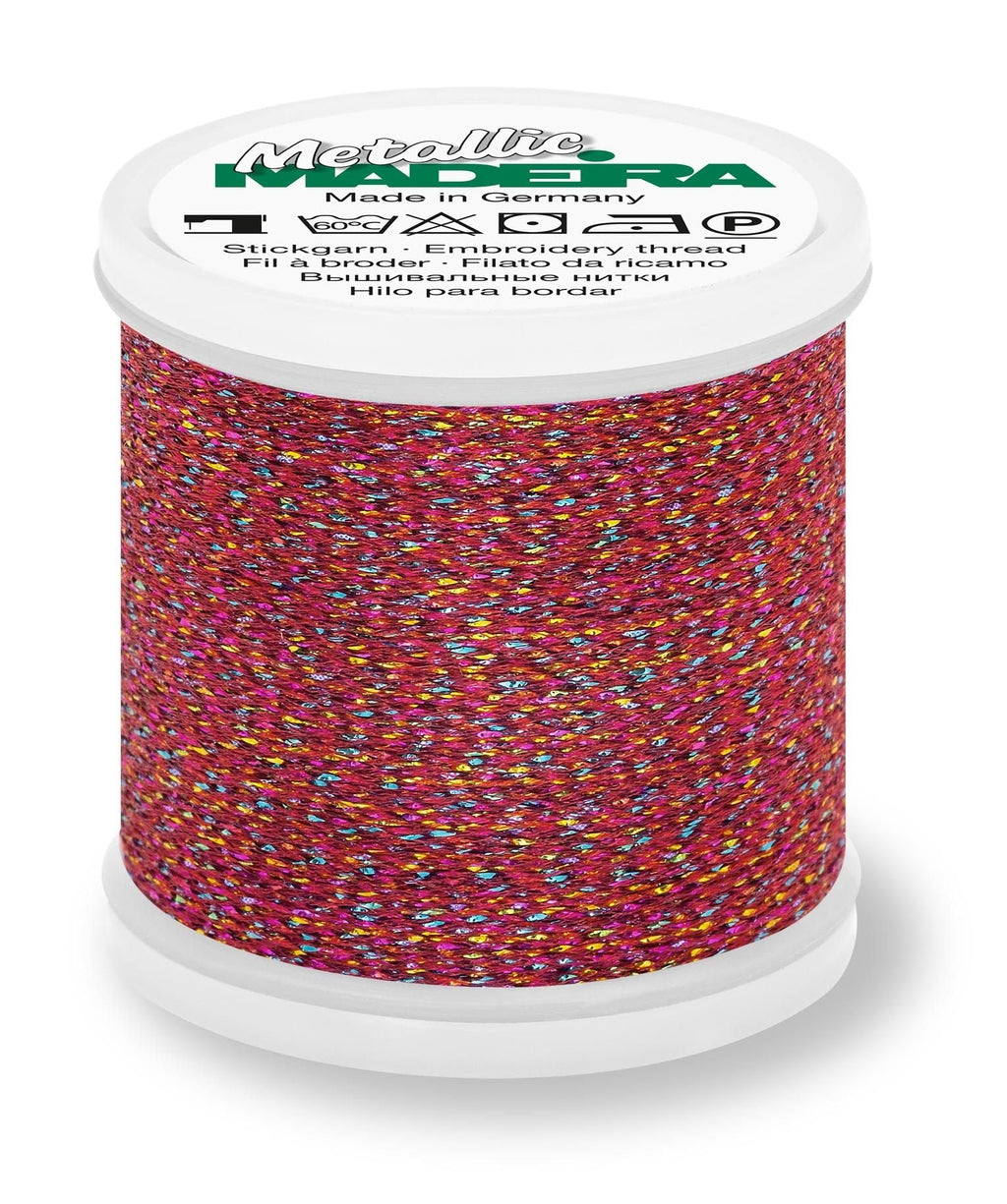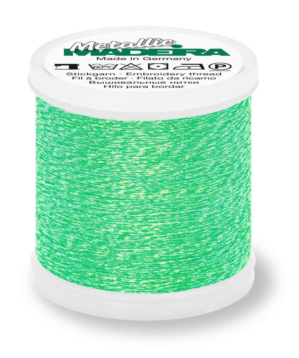 Madeira Metallic #40 - Sparkling is a high-shine metallic thread featuring a unique twist construction that creates a bold, dimensional sparkle. Traditionally used for embroidery, this eye-catching thread also works beautifully for decorative stitching, quilting, and topstitching, making it a versatile addition to your thread collection.