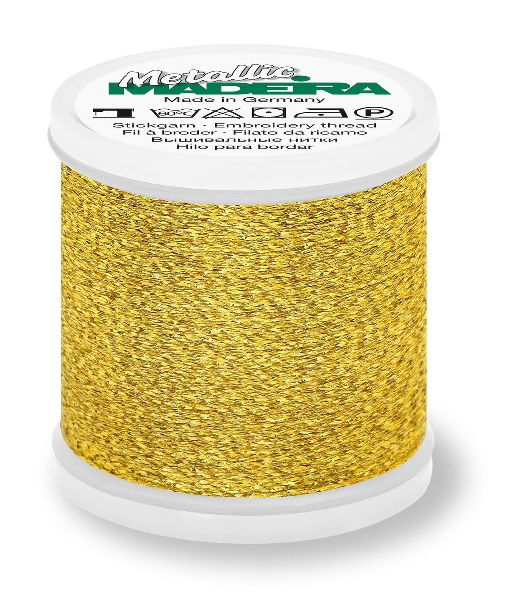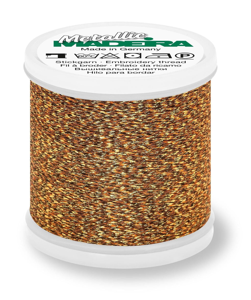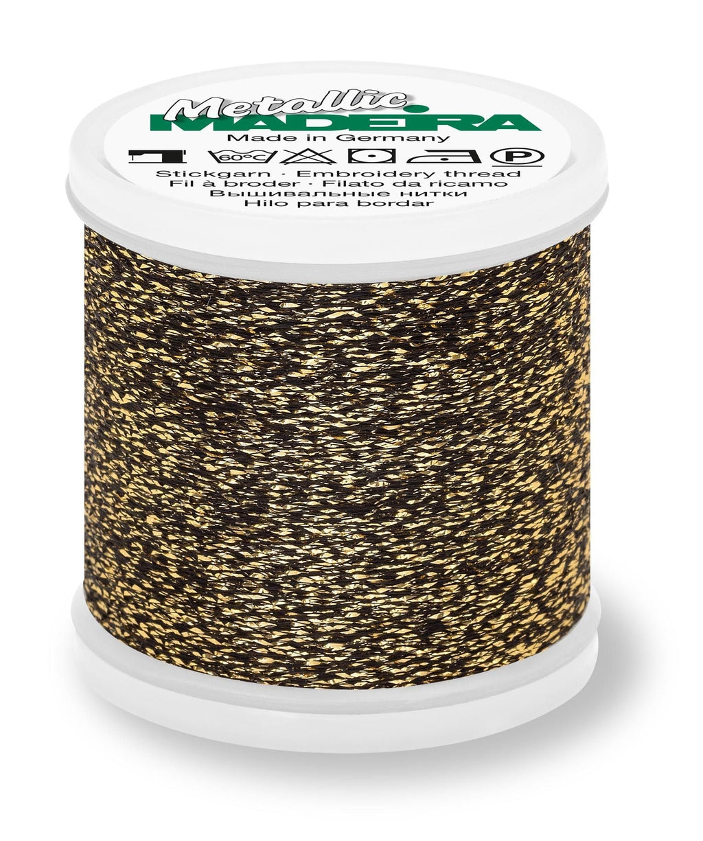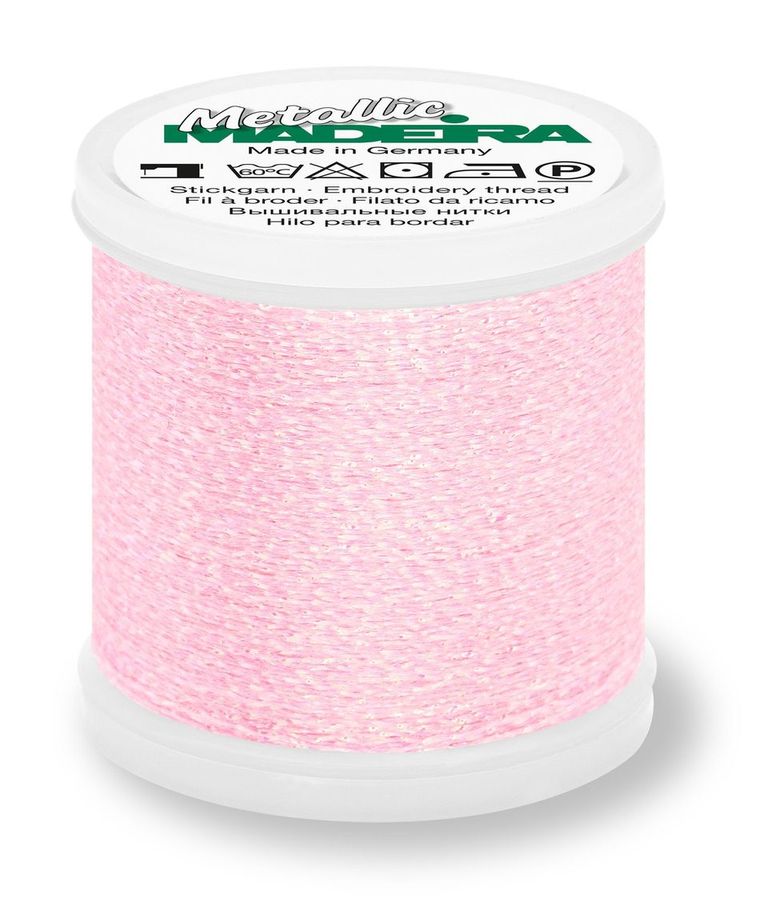 Note: Madeira Metallic #40 threads are designed for decorative stitching and embellishment. Due to their delicate metallic composition, they are not suitable for structural seams or areas exposed to high stress or friction.