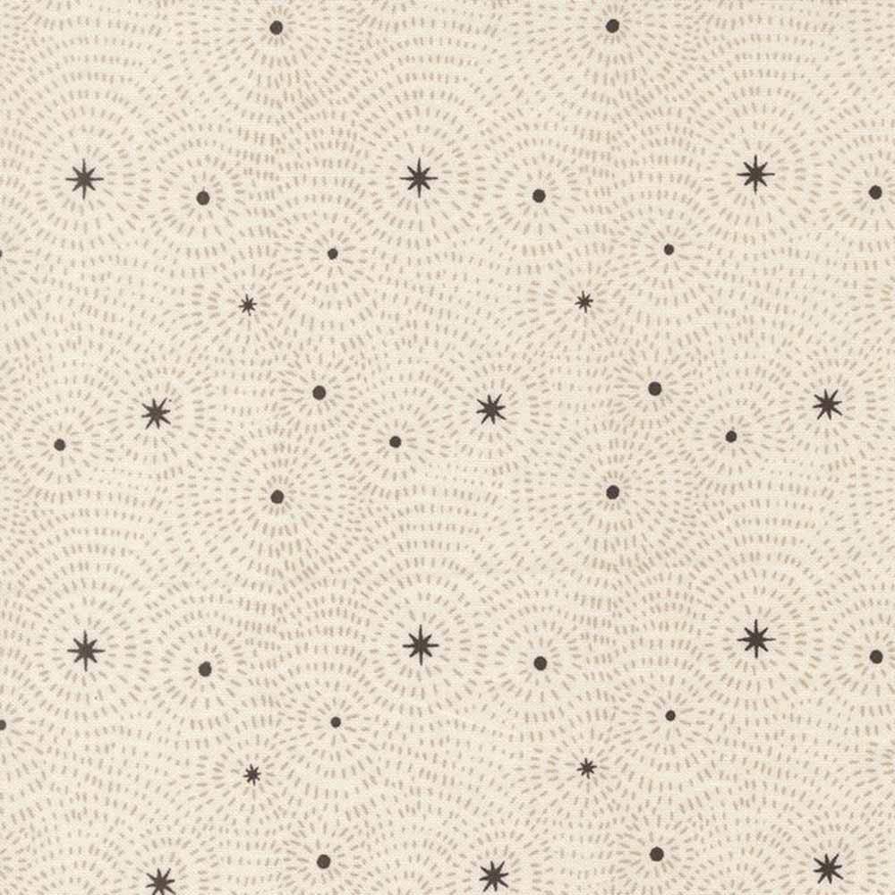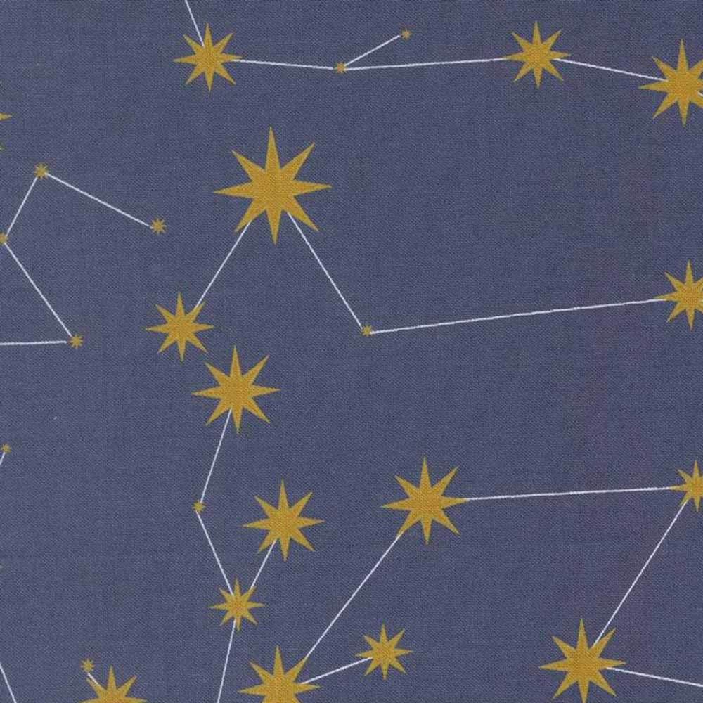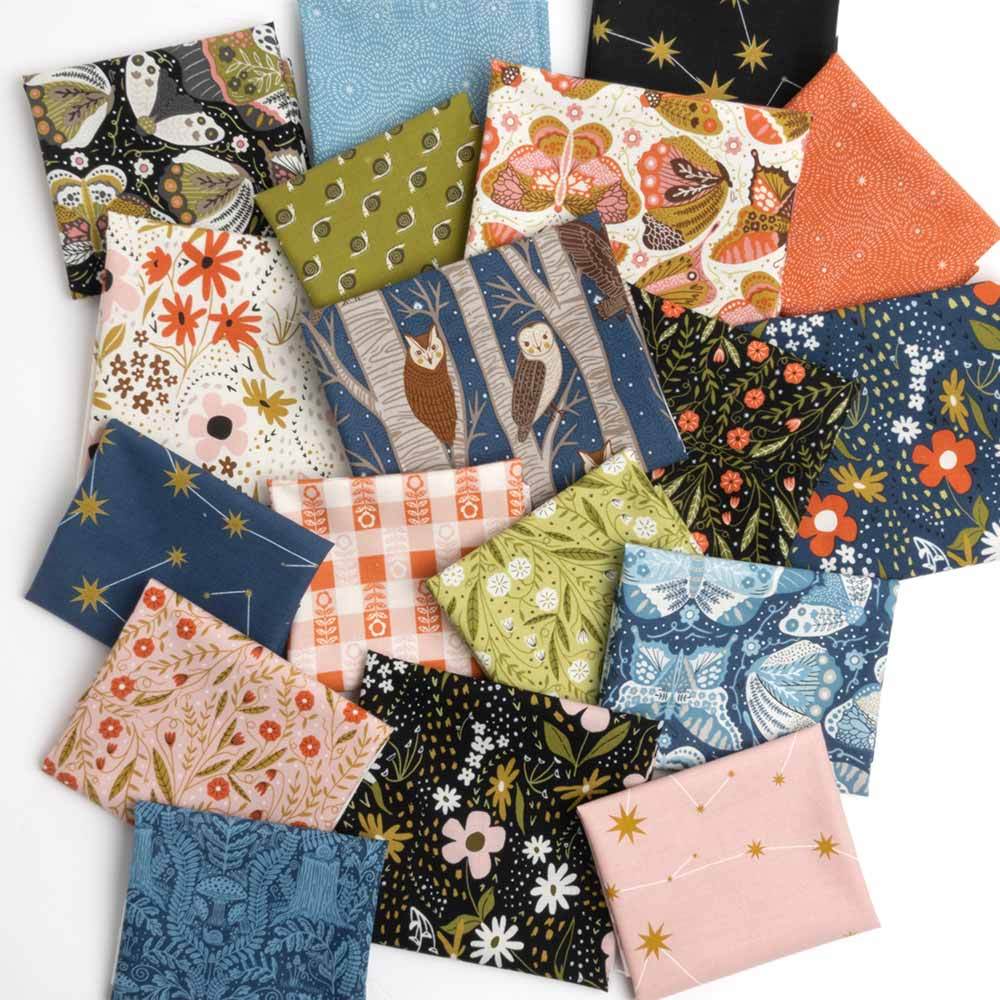 Try your creative hand at traditional star and curved-block elements. Nocturnal Sky II creates a mesmerizing field of stars set against curved “cloud” shapes. This intermediate skill level pattern by Gingiber includes instructions and diagrams for a finished 66" x 66" quilt. Kit includes pattern and all the fabrics needed for the top and binding from the Night Owl collection also by Gingiber. Backing available separately, 4-1/2 yards x 44" wide recommended.