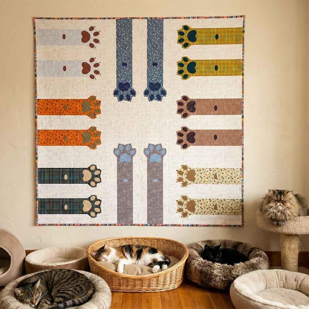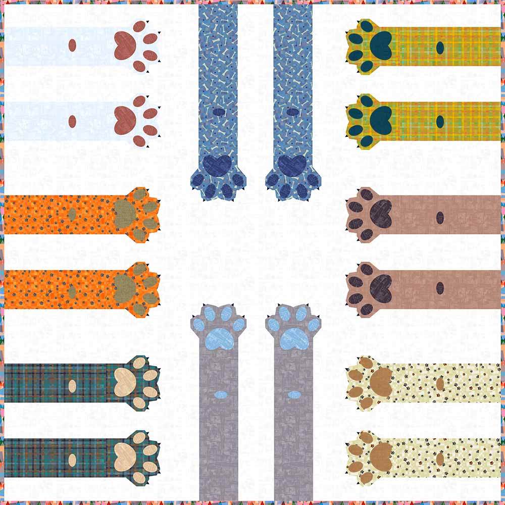 Dog and cat lovers unite! This makes the perfect gift for anyone with a special furry pet in their life. The Paws Up project is a fun, adorable quilt that uses intermediate foundation paper piecing techniques. Layout instructions are provided to make a Mini, Throw, Twin or Queen quilt. Pattern contains both detailed instructions and diagrams, making it easy to piece. Kit includes pattern by Whole Circle Studio and all the fabrics needed for the top and binding for the queen size, 90" x 90", by Gareth Lucas from his Fur-Ever Friends collection. Backing available separately, 8-1/2 yards of a 44" wide or 3 yards of a 108" wide recommended.
