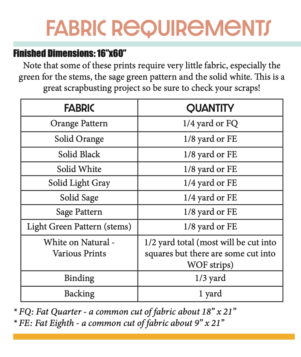 Decorate your fall table with this easy to make table runner pattern. Completely beginner friendly pattern that makes different kinds of pumpkins in fun little patterns. Pieces are easy to cut out but if you're not a fan of cutting make sure to check out our precut kits that use the fabrics shown in the pictures!