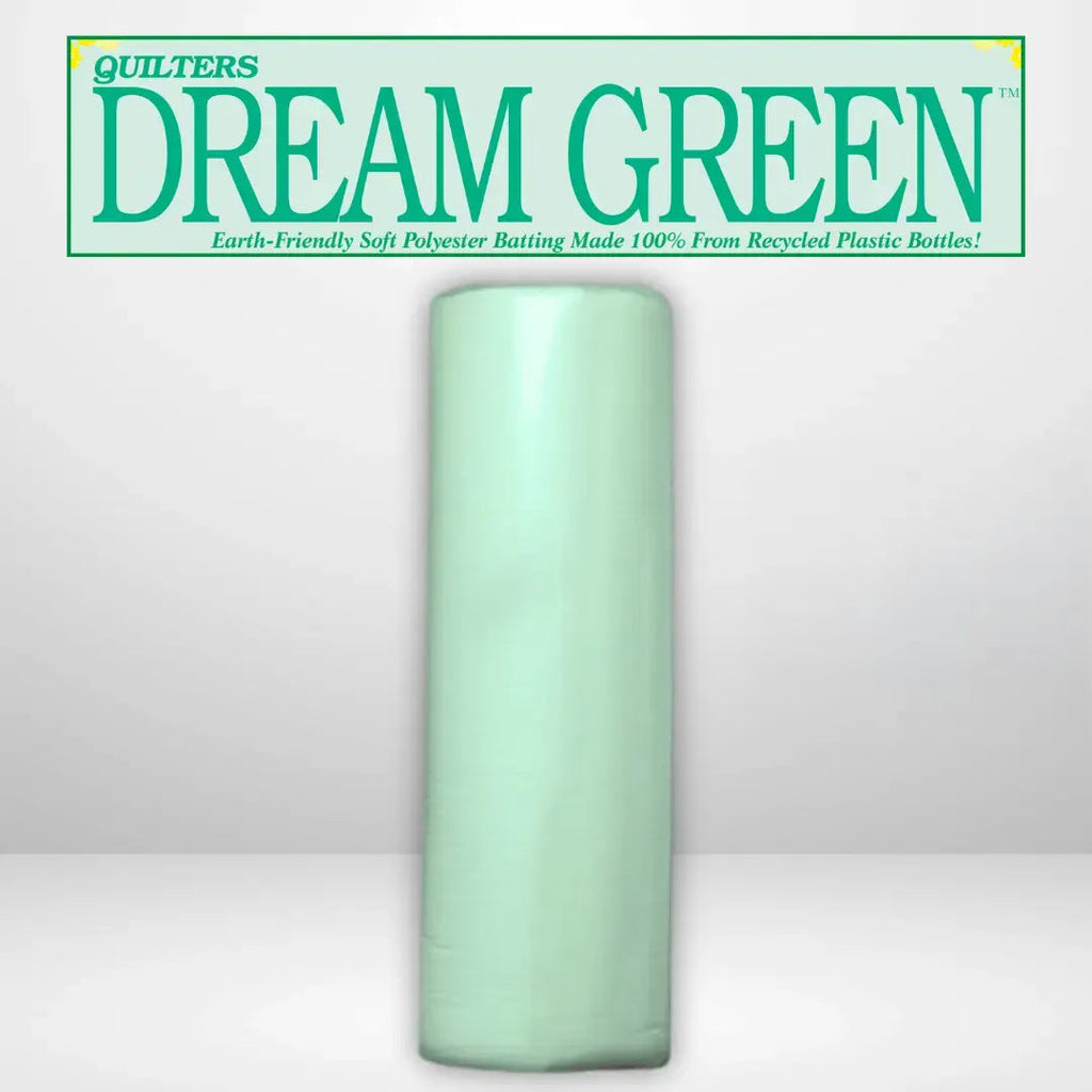 Dream Green is a soft, cozy batting made 100% from recycled plastic bottles! Dream Green meets our highest standards of quality, function, and performance. Your needles will glide through this unique eco-friendly batting. Finished quilt may be machine-washed and dried with little to no shrinkage. Dream Green is wrinkle-resistant.