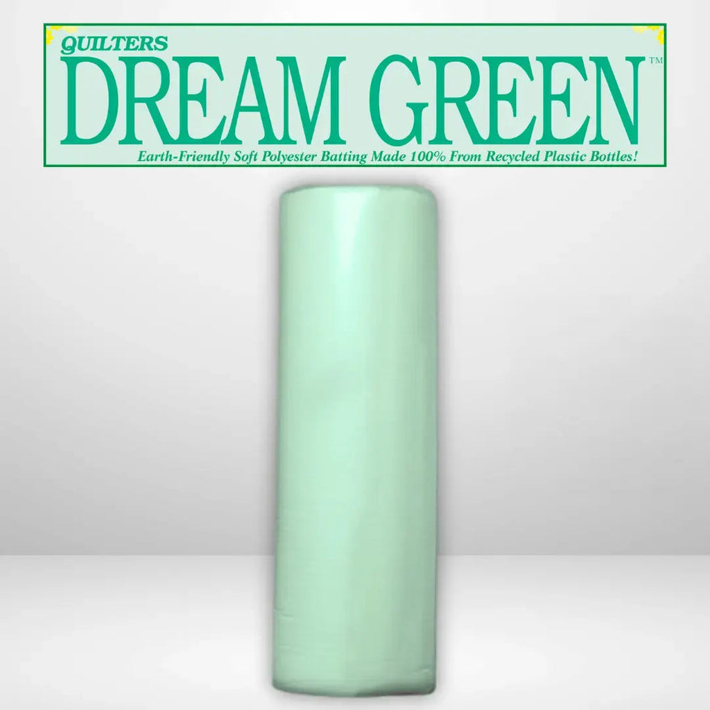 Dream Green is a soft, cozy batting made 100% from recycled plastic bottles! Dream Green meets our highest standards of quality, function, and performance. Your needles will glide through this unique eco-friendly batting. Finished quilt may be machine-washed and dried with little to no shrinkage. Dream Green is wrinkle-resistant.