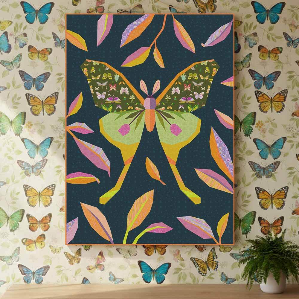 The finished quilt is a stunning celebration of nature and transformation, perfect for confident beginners and seasoned quilters alike. Whether draped over a bed or hung as wall art, the Luna Moth Quilt brings a sense of serenity and wonder to any space.