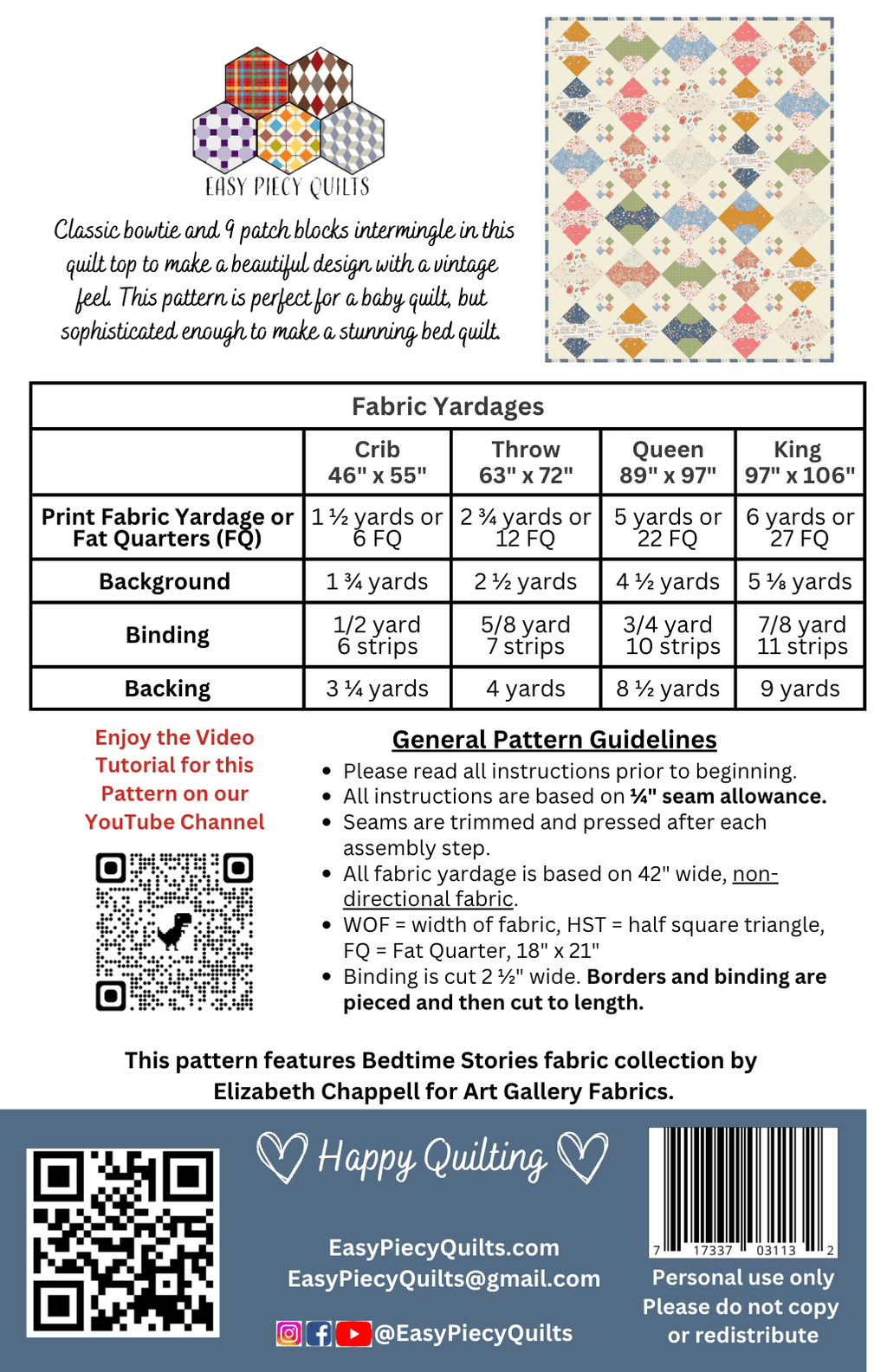 YouTube Video available for this quilt on our YouTube Channel - https://www.youtube.com/channel/UC9qwP7DoT86BB1CFTeTKrrQ