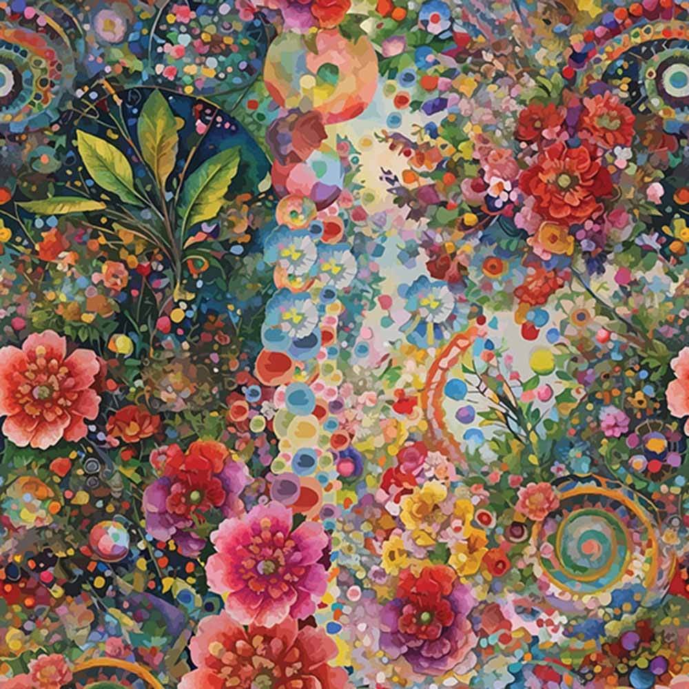 Featuring Marlies Janssen’s latest collection, the Whimsical Flower Garden, a vibrant quilt that brings a playful twist to the classic Tumbling Block design. Bring an eclectic and beautiful bouquet into any space. This quilt is full of vibrancy and movement. Each kit includes all the fabrics needed for one quilt top and binding. Pattern by Candy Quilt Design included. Finished size is 73" x 78". Backing available separately, 5 yards x 44" wide or 2-1/2 yards x 108" wide recommended.